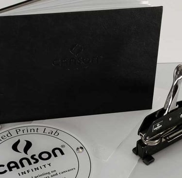 - Amostras de impressão de referência, que são analisadas pela equipe técnica da Canson Infinity para verificação de fidelidade e neutralidade de cor.