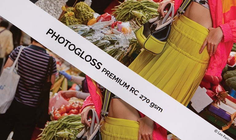 Canson® Infinity PhotoGloss Premium RC é um papel fotográfico sem ácido, de celulose alpha, com revestimento de polietileno e microporos que garantem brilho intenso e qualidade profissional. Oferece D-max excepcional, ampla gama de cores e durabilidade superior, ideal para fotos coloridas vibrantes e de longa preservação.