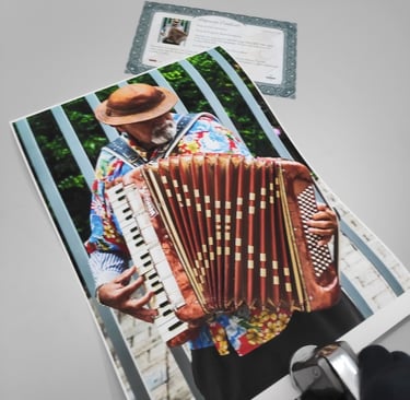 Em laboratórios certificados pela Canson® Infinity, Hahnemühle® ou Epson Digigraphie®, o certificado pode incluir ainda selos holográficos numerados — um no verso da obra e outro no documento, impossibilitando falsificações.